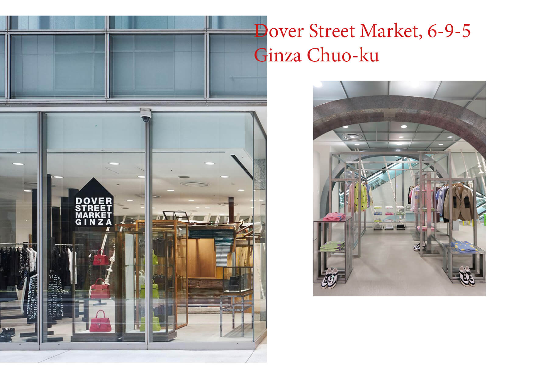 Primo tra tutti, la sede del Dover Street Market a Ginza. Sembrava un ritorno alle origini quando Comme des Garçons e il suo direttore creativo giapponese Rei Kawakubo aprirono nel 2006 la filiale di Tokyo. Distribuito su sette piani, il multibrand ospita le linee di Comme des Garçons, un’ampia selezione di designer internazionali e alcuni progetti speciali. Dover Street Market è stato un punto di svolta in tutto il mondo sin dalla sua apertura, e nello specifico qui in Giappone ha contribuito a rivitalizzare l’area di Ginza.