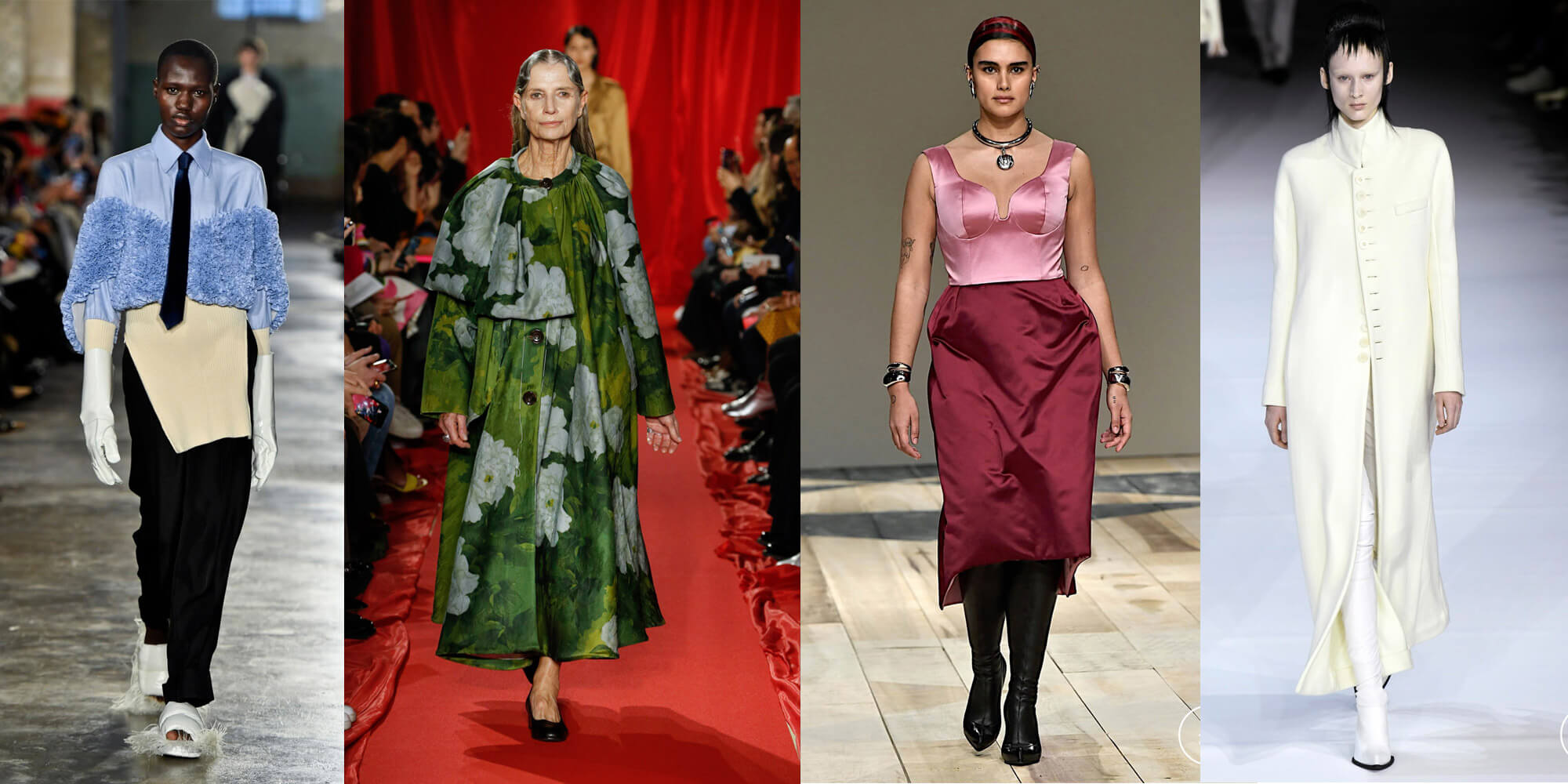 Da sinistra: Toga (New York), Act n°1 (Milano), Alexander McQueen (Parigi), Haider Ackermann (Parigi)