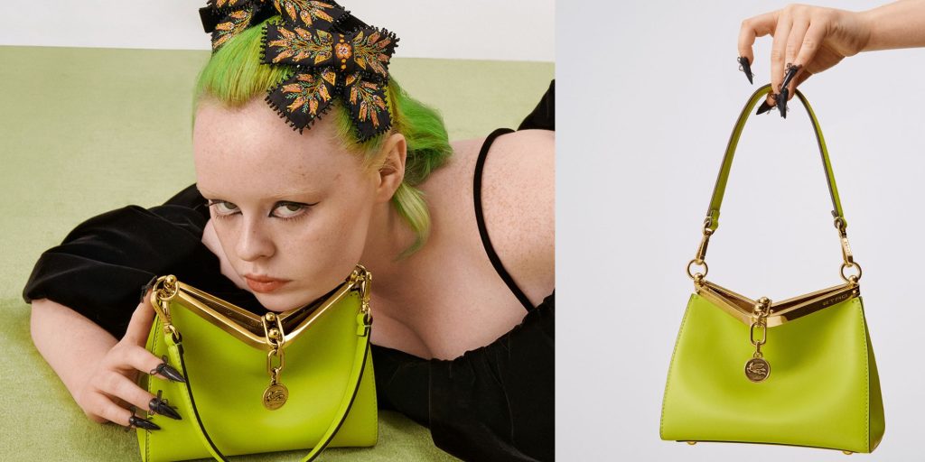 In casa Etro c’è aria di novità: la prima borsa disegnata dal nuovo direttore creativo Marco de Vincenzo viene ora rilanciata in versione mini. Per questa stagione la Vela bag si tinge dei toni del rosa, arancio, azzurro cielo e verde lime. In perfetta sintonia con la tendenza kidcore.