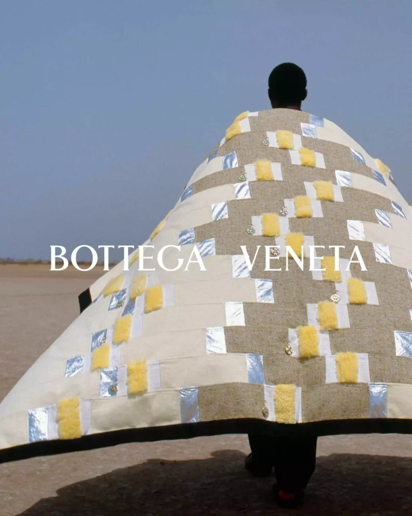 In tale data, durante la Paris Fashion Week, si è tenuto l’evento per il lancio della testata al Centre Pompidou. Qui è stata annunciata la collaborazione tra Air Afrique e Bottega Veneta. Per questo particolare evento, il brand del gruppo Kering ha presentato una serie numerata (e limitatissima) di coperte. Dieci pezzi unici disegnati dallo stilista franco-sudanese Abdel El Tayeb, parte del team di designer del brand. Le coperte sono caratterizzate da un folkorismo eclettico. Colori, stampe e materiali che si fondono in un unico oggetto (non a caso molto delicato da come si legge sul sito nella sezione “dettagli al prodotto”). Air Afrique e la visione di Mattehw Blazy come uniti in un caldo abbraccio. Bottega Veneta a sostegno di Air Afrique.