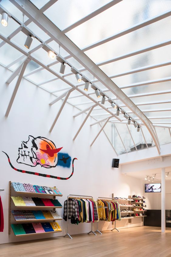 La storia del marchio è strettamente legata al suo primo store, aperto a New York in Lafayette Street, Downtown. Un luogo pensato per gli skater, con i vestiti esposti sul perimetro del negozio e che vedeva al suo centro uno spazio vuoto: come se fosse una pista. Questo faceva del locale non solo un posto dove acquistare capi d’abbigliamento, ma un luogo sicuro in cui si poteva entrare con lo skate ed essere semplicemente se stessi. Era pura libertà sopra le righe. E non c’è da sorprendersi quindi se lo stile inconfondibile dello store newyorkese iniziò a far parlare di sé, in un momento storico in cui scoppiavano la cultura hiphop e l’hype intorno ad altri brand di streetwear quali Nike e Adidas.