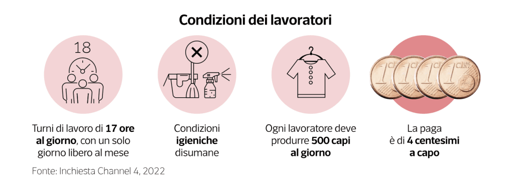 Crediti: tutte le immagini sono estrapolate dall’articolo Shein, il lato oscuro del re del fast fashion: lavoratori schiavi, tessuti tossici e inquinamento di Marta Camilla Foglia e Milena Gabanelli per Corriere della Sera.