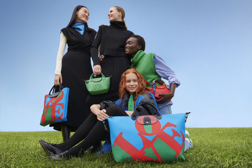 “Ho sempre ammirato l’artista americano Robert Indiana, anche perché ritenevo che le sue opere, dallo stile grafico e dal tono ottimista, si adattassero perfettamente allo spirito audace e all’energia luminosa di Longchamp. L’amore è universale, un messaggio positivo facilmente comprensibile da tutti, mi piaceva l’idea di riprodurlo su Le Pliage®, una borsa che tutti amano, con l’intenzione di creare una collezione effimera che durasse per sempre”.