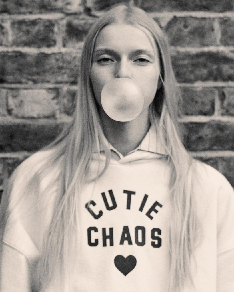 Le fibre a basso impatto sono le fondamenta di questa collezione in linea con la visione di Lambert per prodotti più sostenibili e con gli obiettivi di sostenibilità di Inditex. Cutie Chaos è stata prodotta concentrandosi su tessuti con materie prime grezze come lana riciclata, poliestere, nylon e cotone. Un ulteriore elemento è una selezione di jeans e t-shirt in cotone biologico di ispirazione vintage, ispirati a quelli che Lambert ha trovato nei suoi lunghi viaggi.