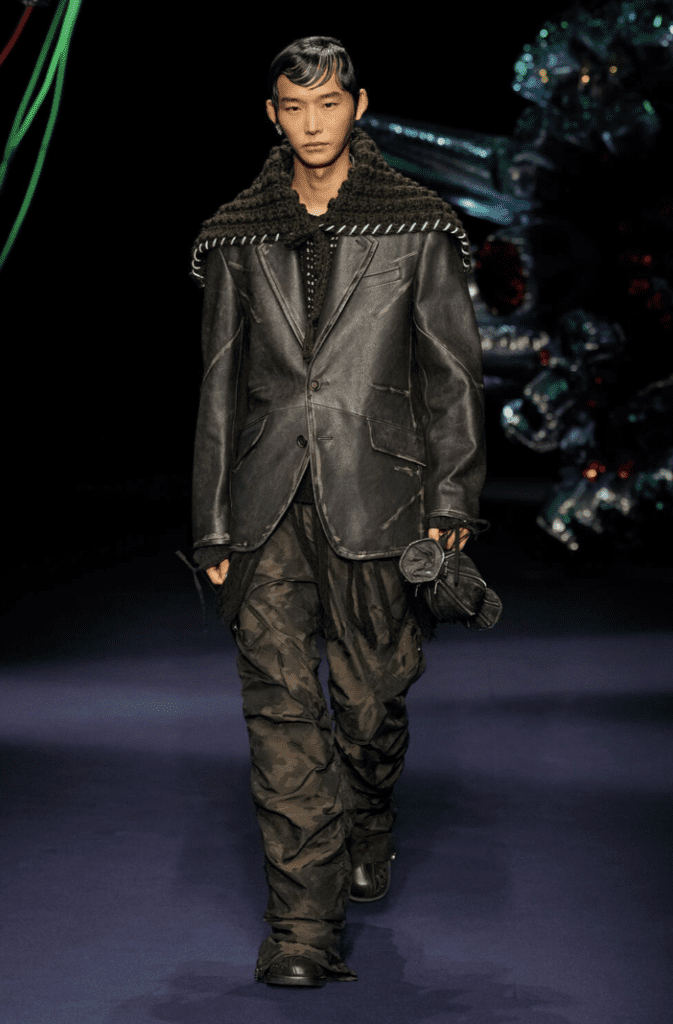 Tra pattern militari, stringhe, impermeabili lunghi e bomber con tasche over, quello che ci colpisce di questa sfilata è il messaggio. Un omaggio a Kwon Ki-ok, pilota coreana neutralizzata cinese e prima donna aviatrice della storia della Corea del Sud.