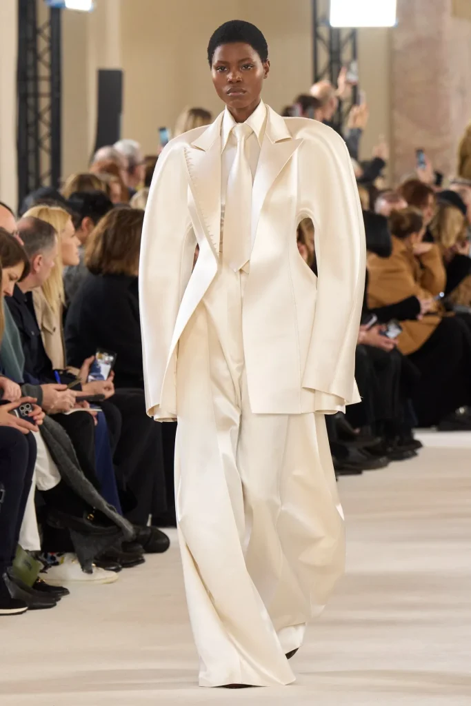 Sogno, surrealtà, scoperta…avvolti da un vortice di mistero sfilano, a Parigi, gli alieni di Schiaparelli frutto della genialità di Daniel Roseberry. La couture del brand omaggia, ancora una volta, la storia della fondatrice. In particolare la sua passione per l’astrologia influenzata dallo zio Giovanni Schiaparelli. Se oggi andiamo su Marte e immaginiamo un mondo extraterrestre popolato da figure aliene è tutto merito suo che, nel 1893, pubblicò i primi studi sul “pianeta rosso”. Non per nulla il titolo della collezione è “Schiapparalien”. Così le modelle della couture diventano l’incarnazione di figure aliene al limite tra umano e tecnologico. Veri e propri marziani (termine coniato dallo stesso Giovanni Schiaparelli) che fondono l’essere umano con l’essere tecnologico, dei cyborg di straordinaria eleganza che calcano la passerella di Ville Lumiere.