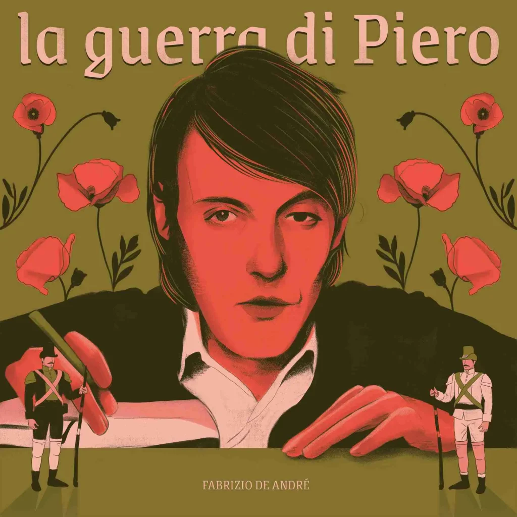 Non penso esista nel nostro paese persona che, almeno una volta nella vita, non abbia ascoltato la celebre canzone “La guerra di Piero” di Fabrizio De André. Il brano racconta dell’esperienza fatta dallo zio dell’artista durante la campagna in Albania negli anni ’40. Descrive l’assurdità dell’obbligo di dover sparare ad un altro essere umano solo perché indossa una divisa differente. Questo brano è una vera e propria satira antimilitaristica.