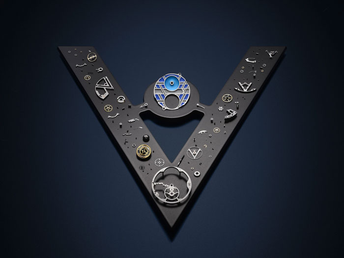 Nascosto, ma non troppo, dietro il quadrante in vetro colorato, si trova il calibro LV 104 con il sigillo “Poinçon de Gèneve”, un’istituzione indipendente che certifica il massimo livello di produzione e finitura di tutti i componenti di un orologio. Il sigillo testimonia l’intricata lucidatura. Il tutto assieme alla decorazione eseguita rigorosamente a mano su tutti e 168 singoli componenti.