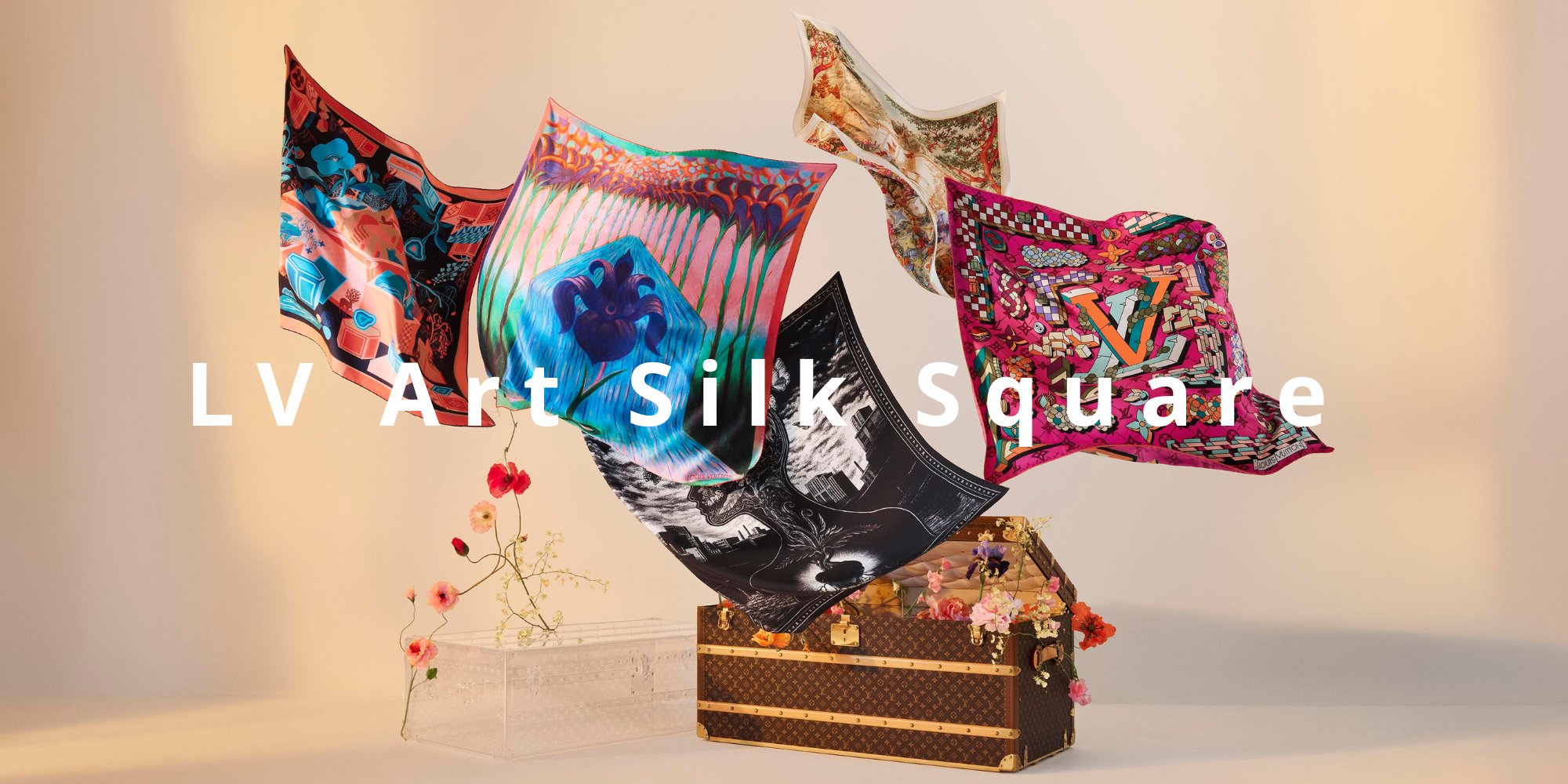 Louis Vuitton presenta l’ultima collezione LV Art Silk Square, cinque Carré in collaborazione con cinque celebri artisti contemporanei.