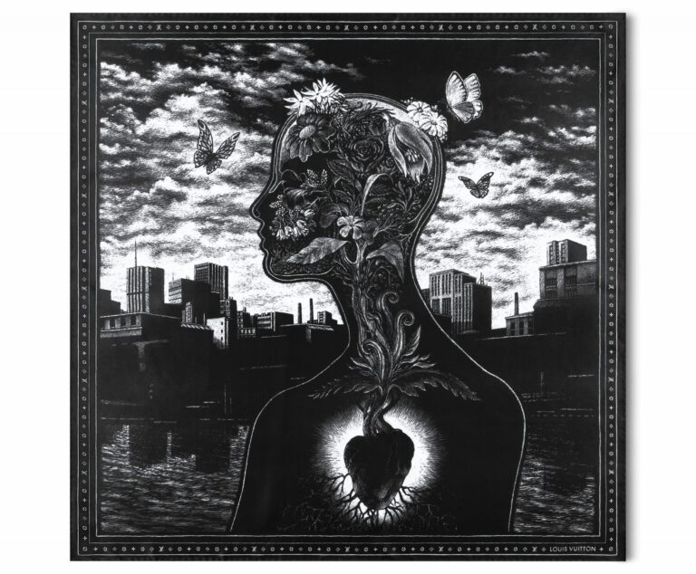 La collezione, l’ultima di una lunga serie, alimenta la storica tradizione di dialogo tra la Maison Louis Vuitton e il mondo dell’arte. Al marchio piace molto comunicare con la creatività tutta, lo si sa. Negli anni i Carré in seta sono stati rielaborati anche da Andrée Putman, César Baldaccini e Philippe Starck. Grandi artisti di fama internazionale.
