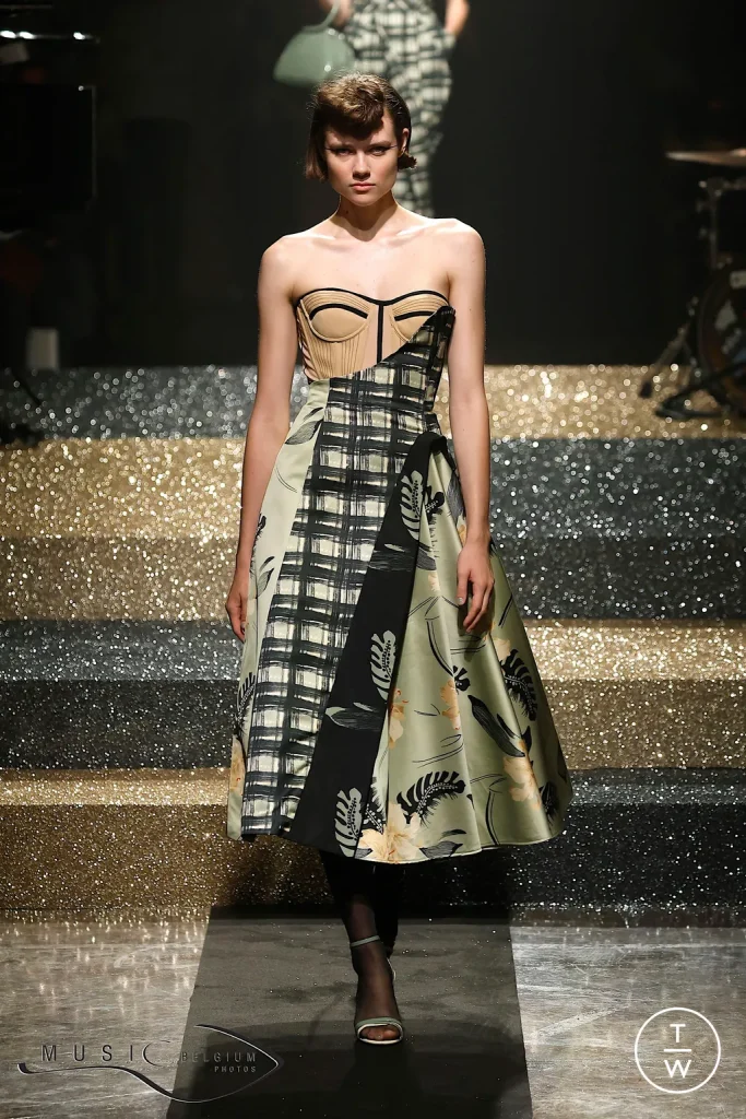 Continuiamo con N°21 che ci presenta in passerella un mix-and-match mica male. La vibe che ci arriva dalla passerella è totalmente anni 2000, con collane di perle e stampe molto vive e definite. I tagli dei capi sono diversi, se abbiamo look più seriosi, ne abbiamo anche altri dalle linee più morbide e divertenti. Trasparenze e frange metalliche.