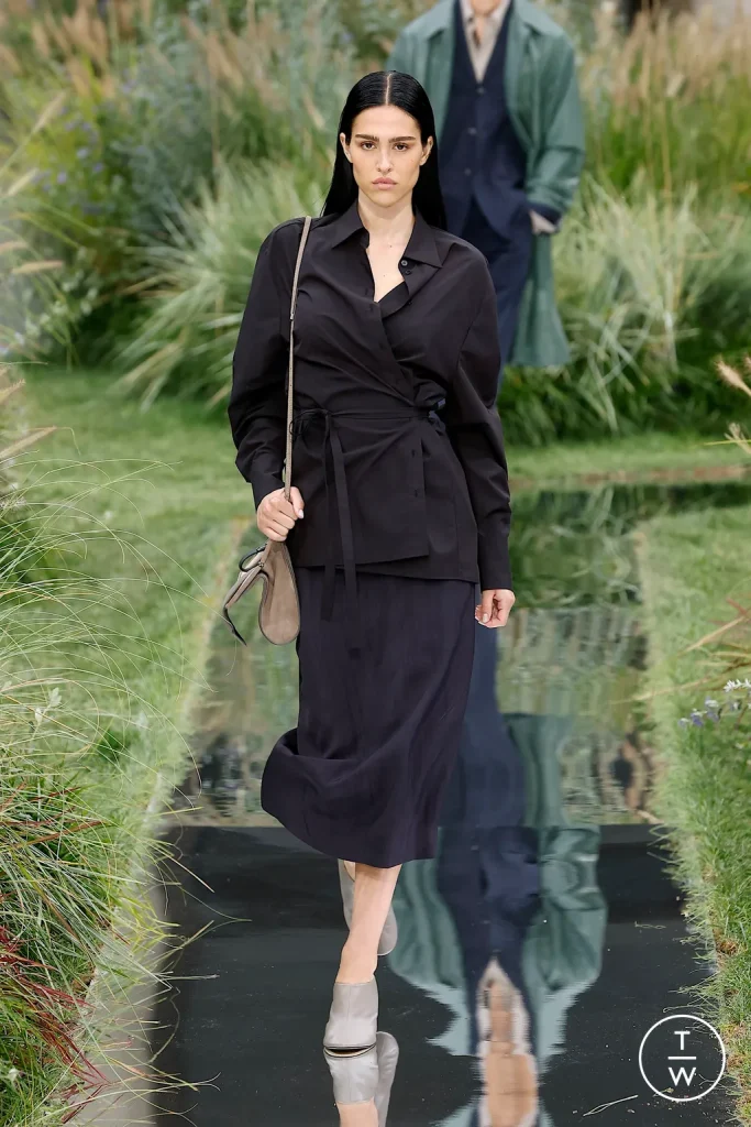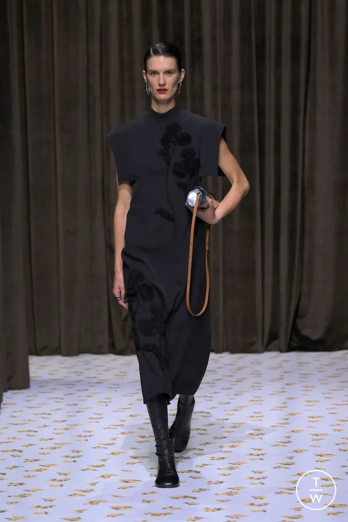 Con la pioggia arriviamo da Jil Sander. I look vertono su colori più scuri, molto presente il nero, a detta del duo, Lucie e Luke Meier, questo mood più “dark” è una risposta “all’ambiente del mondo”. Se l’anno scorso la collezione si focalizzava su capi più femminili e silhouette fascianti, quest’anno sembra che il marchio ci voglia portare alla dura realtà dei fatti.