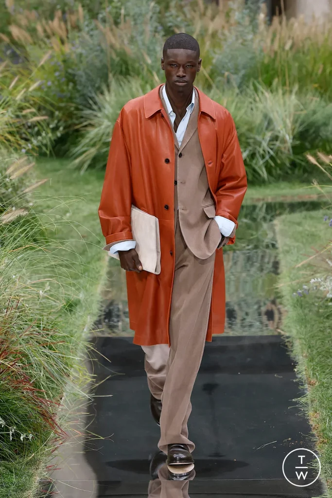 Le ultime collezioni hanno cercato di smantellare e ridefinire l’heritage corp-core del brand, proveniente dagli anni ’80 e ’90. E infatti: la collezione viene intitolata “Out of Office”. I tagli e le silhouette dei capi sono molto morbidi, classici look da ufficio, ma all’occhio molto più comodi. Altri vengono invece reinterpretati rendendoli più interessanti, ma comunque legati alla scrivania. Tantissimi i trench, le giacche e i vestiti. Alla spalla delle modelle valigette aperte contenenti chiavi, penne e anche un materassino da yoga. Matteo Berrettini invece, completo di racchetta da tennis.
