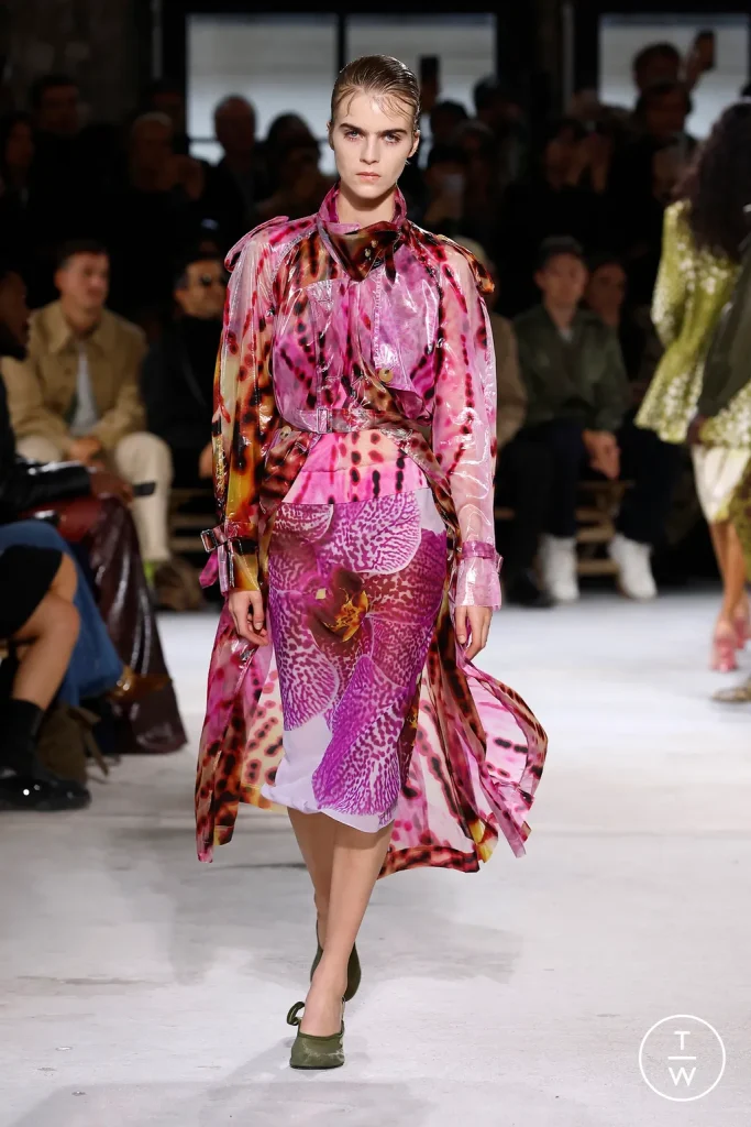 Tornando indietro con il tempo possiamo facilmente renderci conto che la runway FW del 1997 è stata un importante punto di riferimento. Fiori, gioielli e un mix di codici stilistici. La novità l’abbiamo trovata nei riferimenti alla lingerie, presenti in alcuni capi. Ma poi i colori, le stampe! I fiori sono presenti, a volte molto espliciti, altre volte meno. I capispalla sono, scusatemi il gioco di parole, il fiore all’occhiello della collezione.