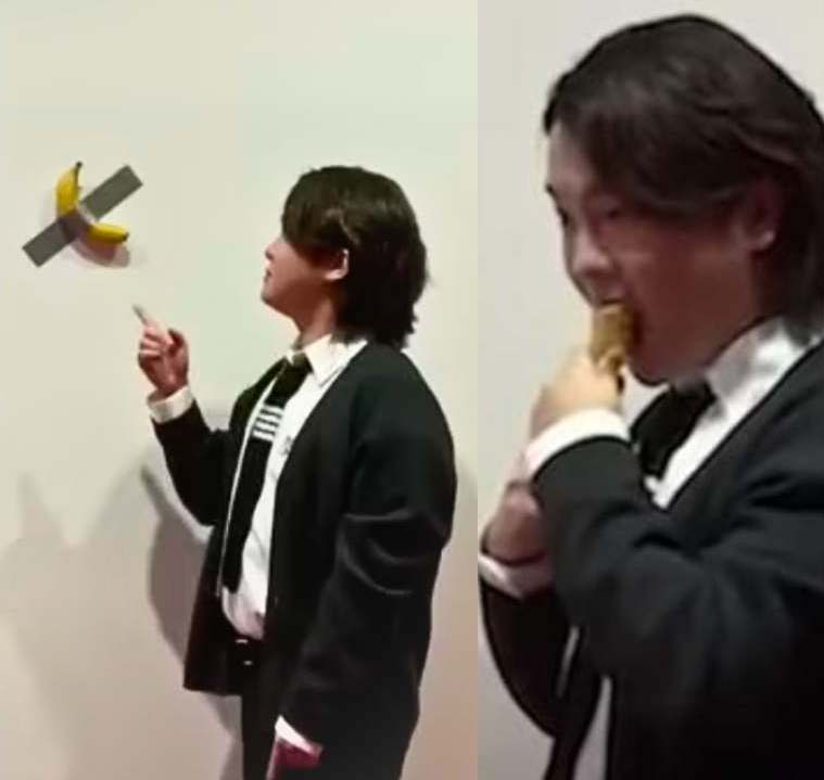 Durante la mostra a Miami, l’artista David Datuna la staccò e la mangiò dinanzi al pubblico, che incredulo battezzò l’esibizione “Hungry Artist”. E ancora nel 2023, un episodio simile in Corea del Sud: uno studente affamato mangiò la banana da 120 mila dollari affermando: “Colazione saltata, avevo fame”.