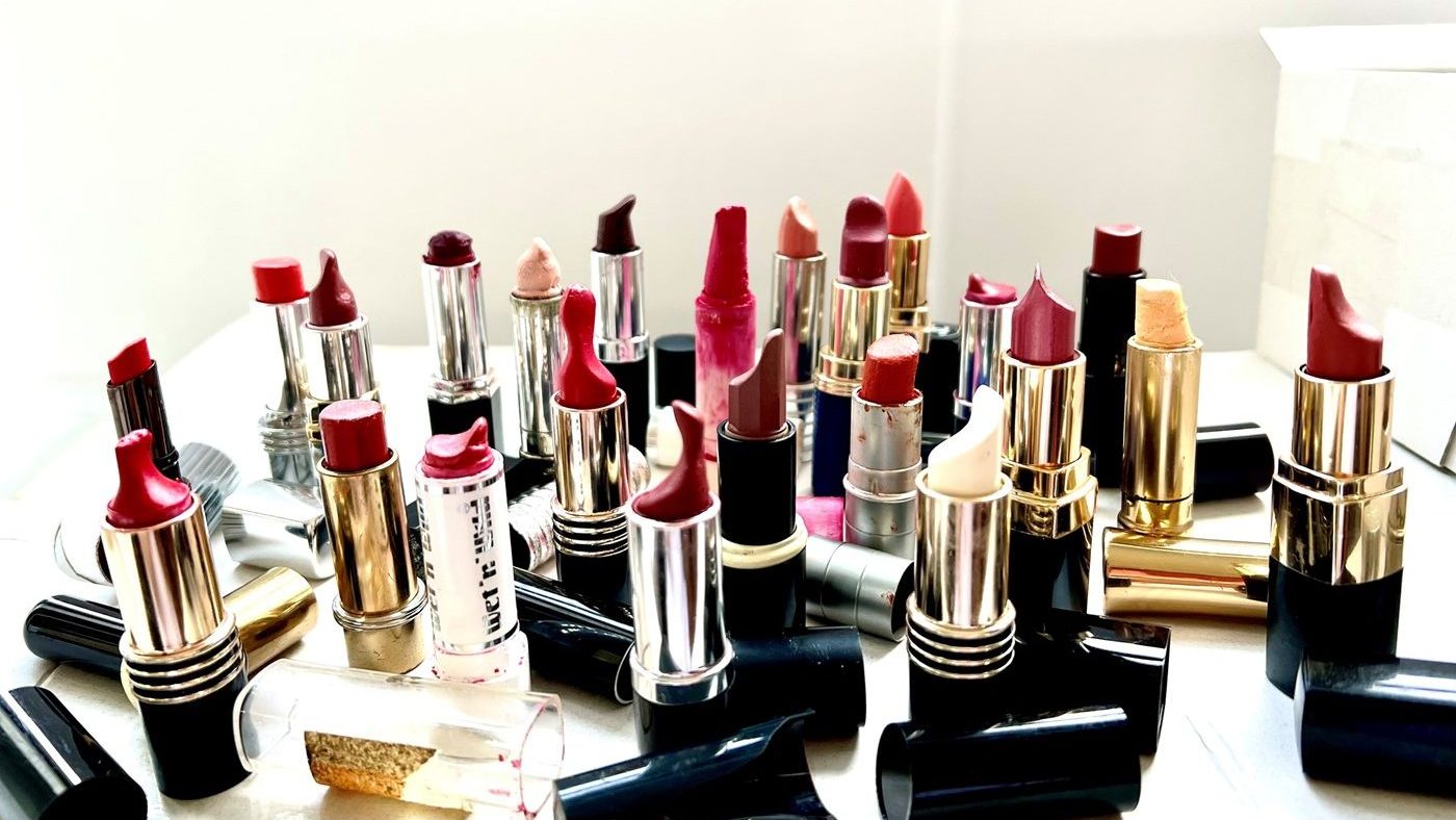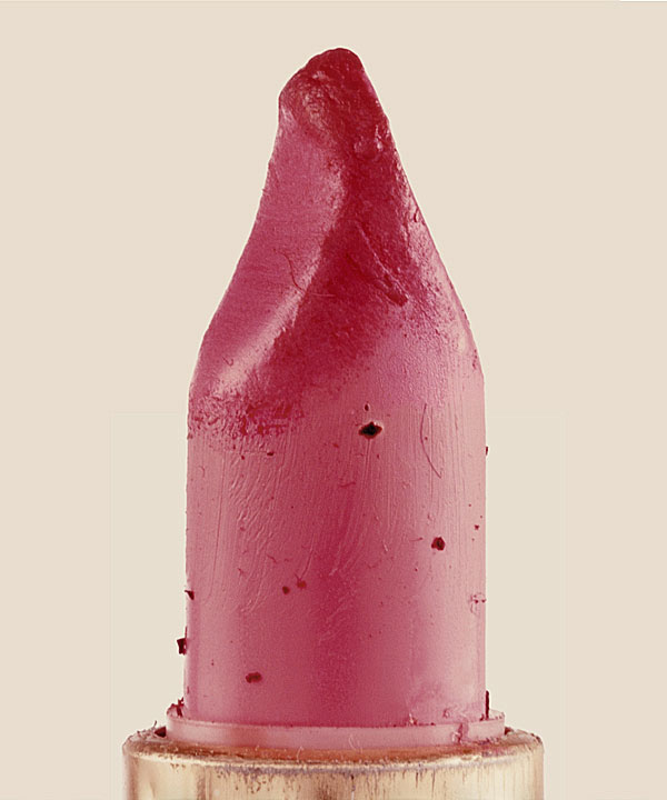 Ci sono tubetti regolari, con il normale taglio obliquo di produzione ancora ben visibile, solo un po’ più stondato per via dell’uso. È questa la varietà più comune, ordinaria, di chi utilizza il rossetto tenendo conto della sua naturale forma, fatta per seguire le labbra. Poi, ci sono tubetti piatti, quasi stroncati. La forma suggerisce l’uso tramite l’ausilio di un pennellino, e quindi, che il proprietario sia una persona che applica il prodotto in maniera attenta, meticolosa, il più precisa possibile.