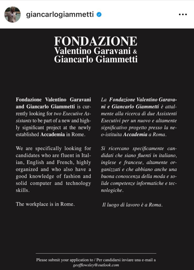 Credits: G. Giammetti e V. Garavani backstage sfilata 1962 WWD/Getty Images; Post su X di Giancarlo Giammetti (@giammetti); Post su Instagram di Giancarlo Giammetti;