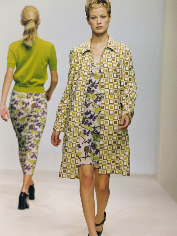 Corre l’anno 1996, e a Milano viene presentata la collezione Banal Eccentricity, la Primavera/Estate di Prada di quell’anno. Sotto gli occhi attenti del pubblico sfila in passerella un’estetica nuova, che prenderà più avanti il nome di ugly chic. Pattern, tessuti, e colori sono tenuti insieme da netti contrasti, incontrandosi e scontrandosi allo stesso tempo in una danza di accostamenti quasi discutibili. Regna la disarmonia, e il cattivo gusto diventa uno status symbol. Miuccia trova la ricerca del brutto più stimolante dell’inseguimento della bellezza, perché “il brutto è umano”. E così, i sandali con plateau vengono portati con calze maschili, i pattern retrò si imbattono nel minimalismo, la plastica nella maglieria. Infrange le regole, e le rifà da capo.