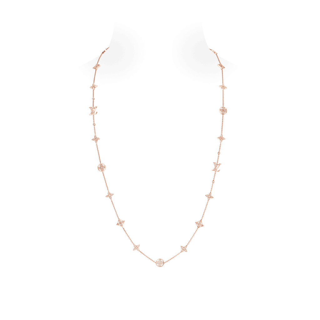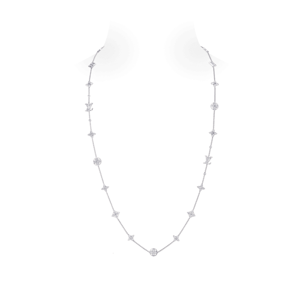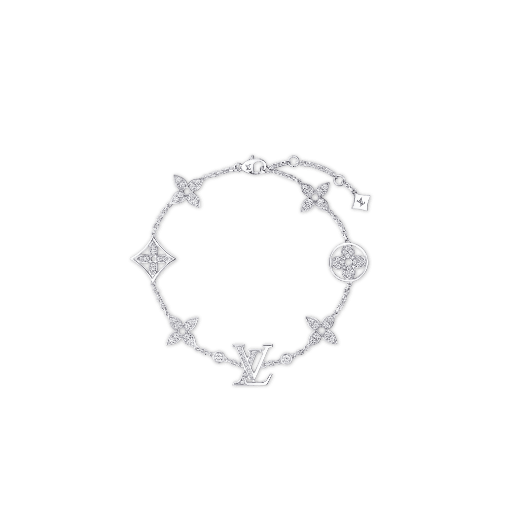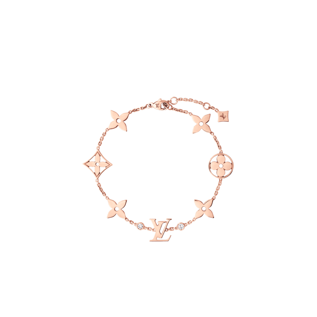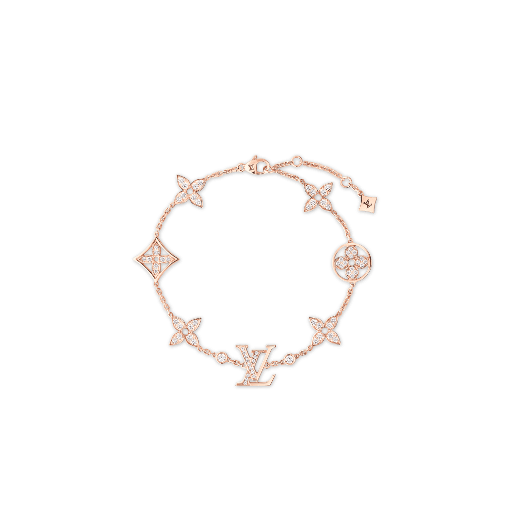 Le novità della collezione includono due collane, tre bracciali e un anello, ognuno con dettagli preziosi che reinterpretano l’identità Vuitton. Le collane, disponibili sia in oro bianco che rosa, sono impreziosite da diamanti incastonati che ne sottolineano la finezza. I petali traforati o incorniciati sembrano sospesi, fondendo l’eleganza del design con la purezza dei materiali.