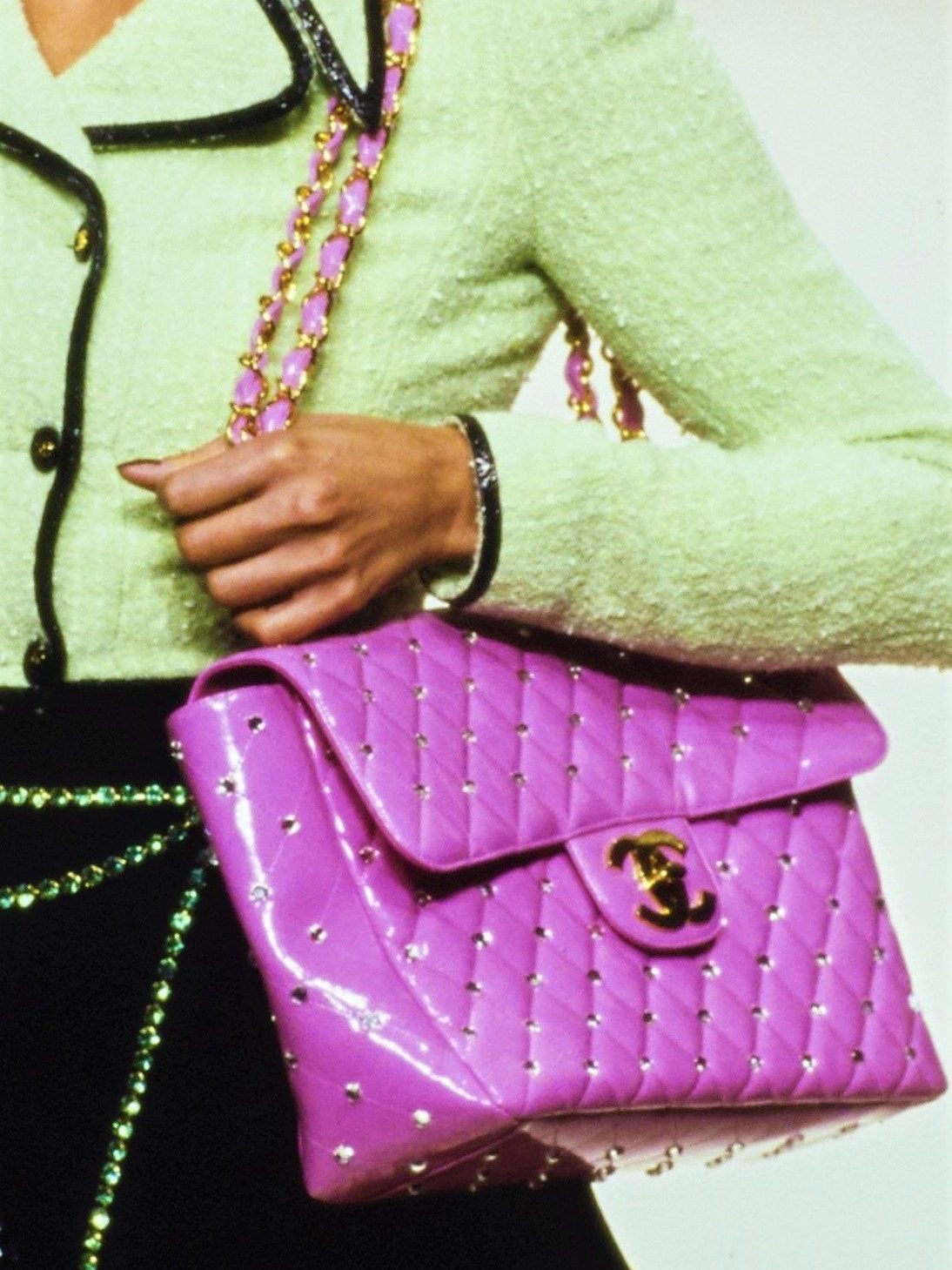 Quando Karl Lagerfeld assunse la direzione creativa di Chanel nel 1983, infuse la 2.55 con la sua visione artistica. La lunga e sottile striscia di pelle tra le maglie della catena di cui si compone la tracolla, ad esempio, fu opera sua. Il restyling prevedeva anche la sostituzione della chiusura rettangolare con la doppia C, logo distintivo della maison, creando così la Classic Flap 11.12. Da lì, con gli anni, si prese il via. Nuovi colori, nuove texture, patte interne aggiuntive, angoli arrotondati, finiture innovative.