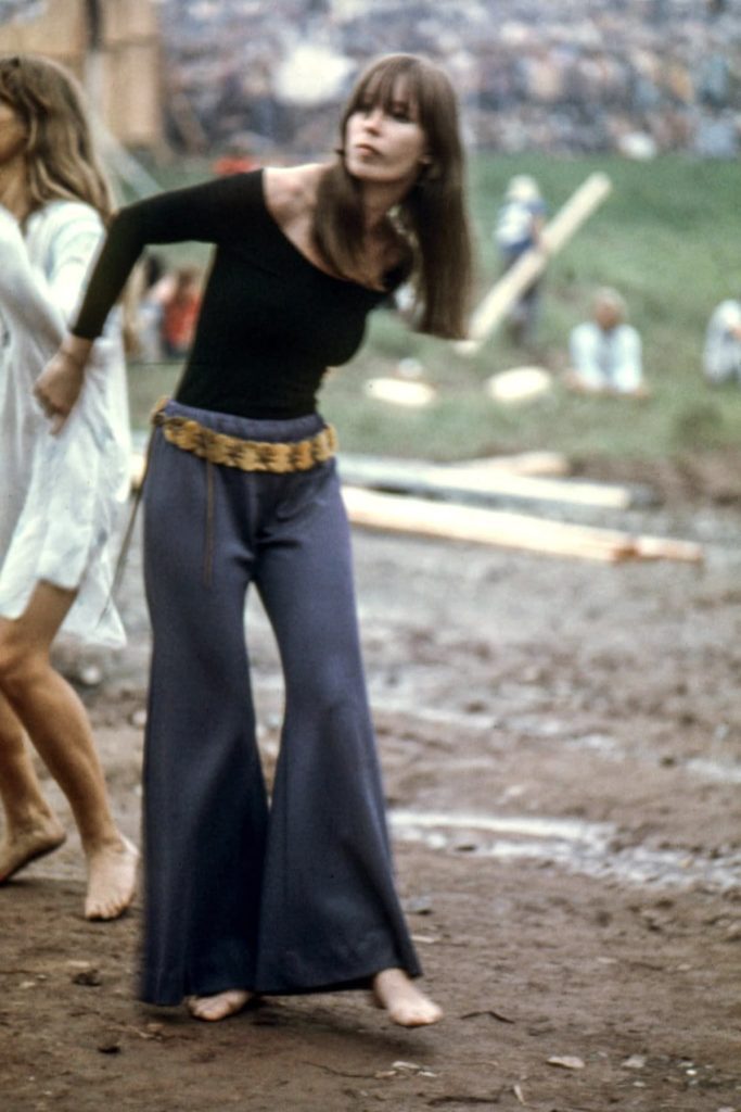 Woodstock rifiutava qualsiasi regola, l’abbigliamento era un atto di libertà: nessuno stress da “cosa mi metto?”. Ci si vestiva come meglio si credeva, in virtù della libera espressione, essenza stessa del festival. Pur facendolo inconsapevolmente, questo influenzò la moda degli anni a venire, nonché quella dei giorni nostri. Pantaloni a zampa, cinture e sandali intrecciati, gonne lunghe e leggere, tessuti see-through, macramè, patchwork, jeans strappati, il trend del micro e dell’oversize che convivono. Per non parlare delle frange, delle stampe floreali, dei gioielli che richiamano talismani di altre culture, dei poncho e delle bandane.