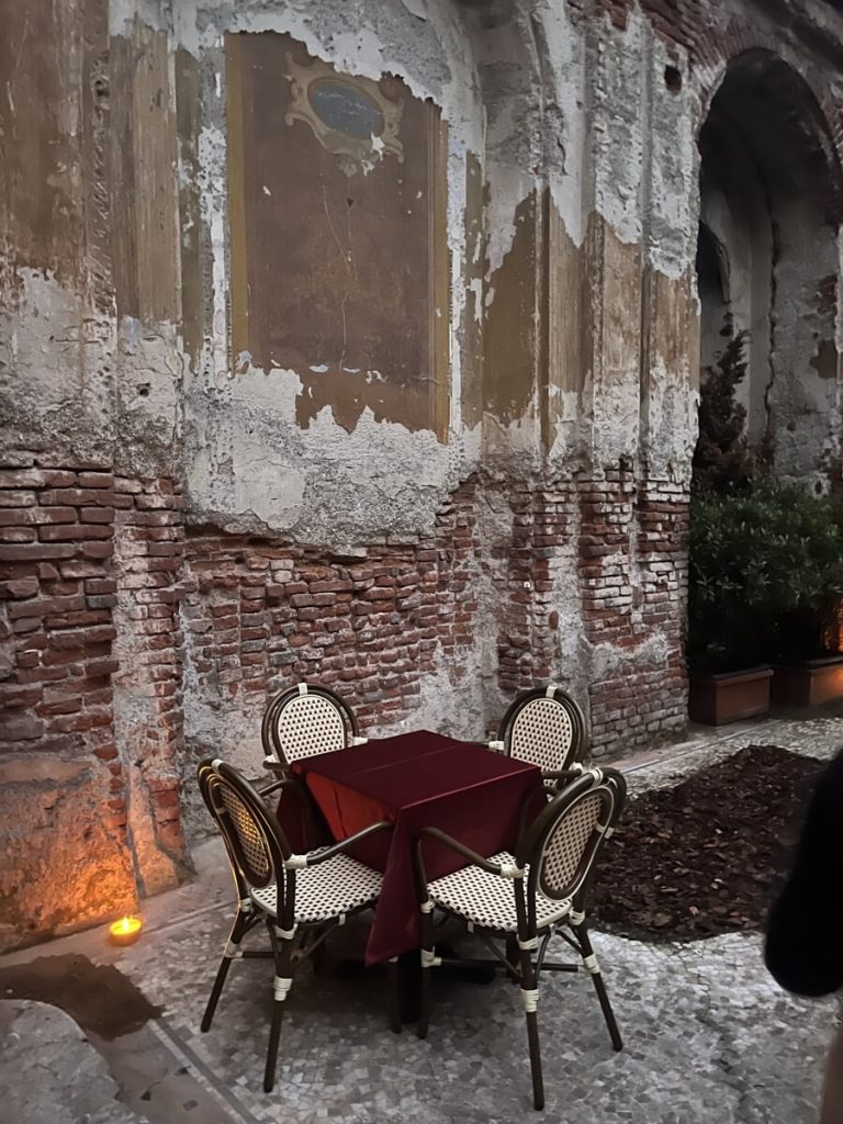 La Rue non è solo cibo. Il ristorante trova la sua cornice ideale in una delle zone più affascinanti di Milano, nell’area della Chiesa di Santa Febronia. Questo piccolo gioiello architettonico nascosto, attraverso un accordo rent to buy verrà usato per ospitare eventi per privati durante momenti importanti e non sarà utilizzato come dehors. Il dialogo tra memoria sacra e ritualità laica è silenzioso ma potente: da un lato la spiritualità della chiesa, dall’altro la convivialità parigina del bistrot. Un contrasto armonioso che rende l’esperienza ancora più suggestiva.