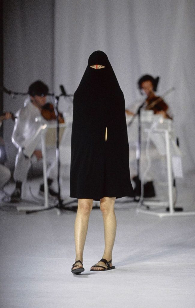 Nella sua sfilata Between del 1998 tutte le modelle sono coperte come le donne talebane, dalla testa ai piedi. L’ultima è uscita in passerella nuda solo con il burqa. Pensare questo ai tempi nostri è completamente impossibile. Se Hussein Chalayan ha lasciato qualcosa nella moda è il suo design innovativo e di avanguardia, ma nella Terra del politicamente corretto, gli statement fuori dal pensiero collettivo non sono e non sembrano essere ben apprezzati.