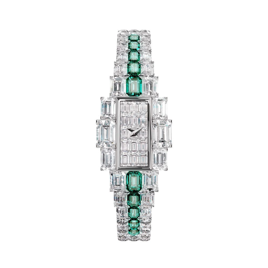 Come note di una sinfonia perfetta, le linee geometriche del design evocano l’Art Déco, un’epoca in cui la bellezza era un atto di coraggio e di stile. Le pietre, incastonate con una delicatezza che sfiora l’eterno, riflettono la luce con una purezza che sembra sospesa nel tempo. Il taglio smeraldo e il raro sugarloaf donano profondità e mistero, come un segreto sussurrato tra le pieghe della storia. Ogni griffe, modellata a forma di croce di Malta, è un piccolo simbolo di maestria e di memoria: un dettaglio che racconta l’anima di Vacheron Constantin.