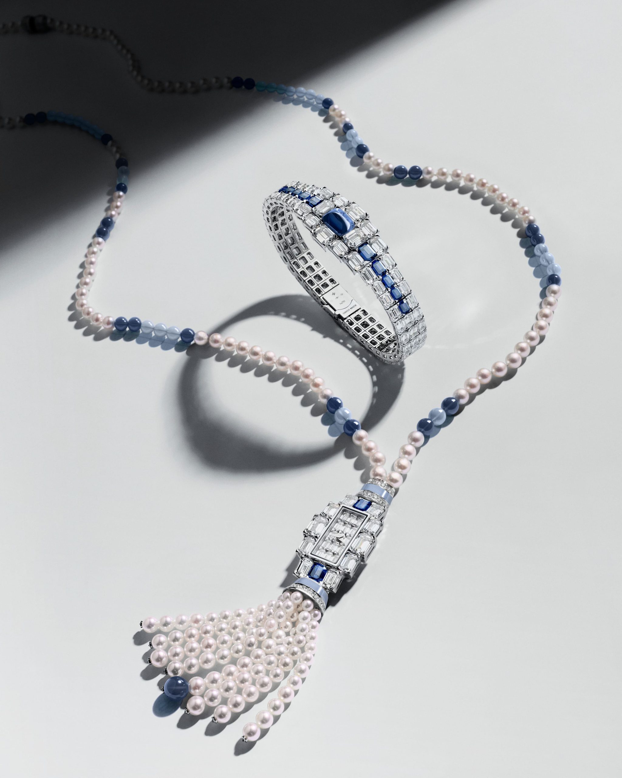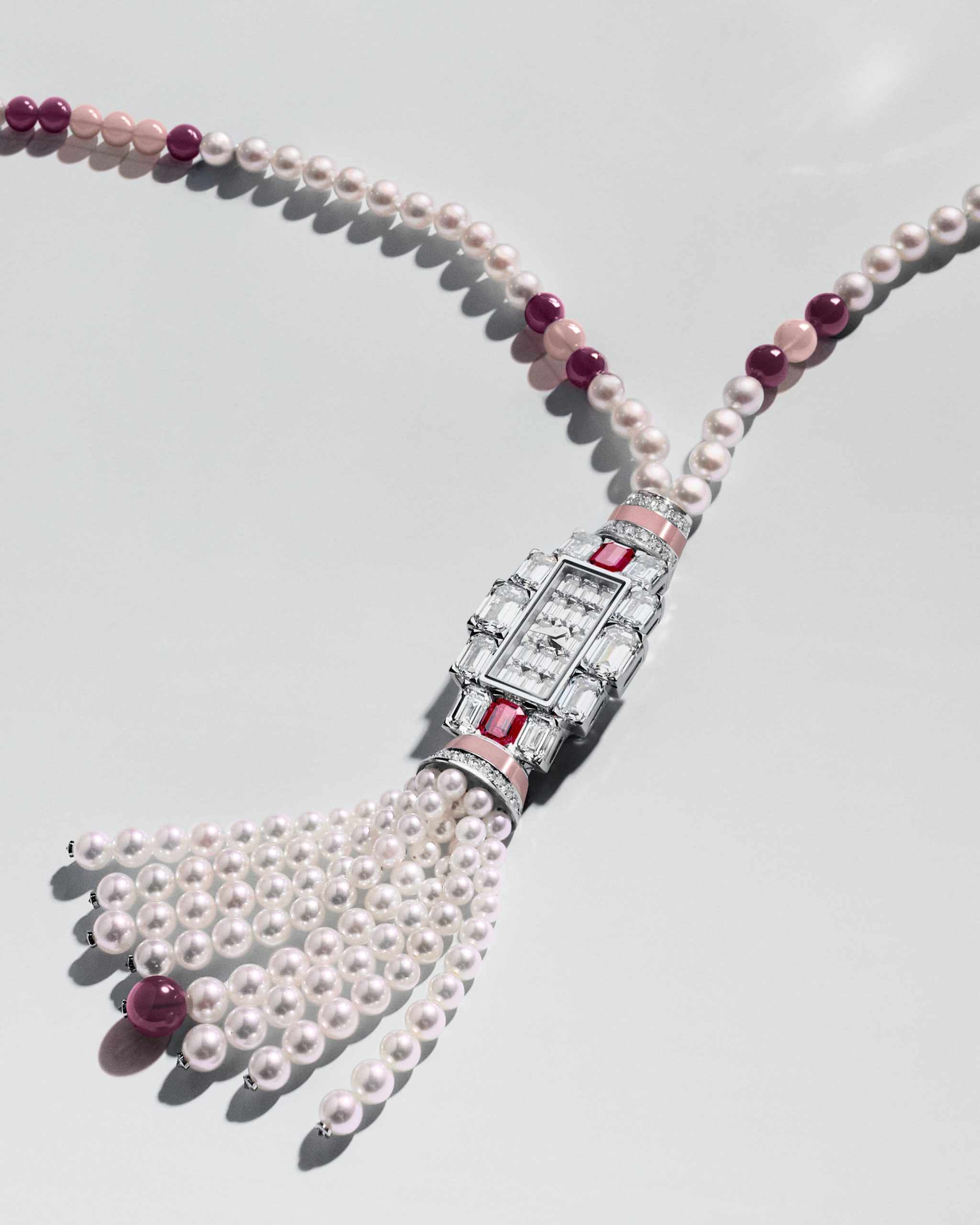 Non è solo un orologio: è una poesia di metallo e gemme, un’opera d’arte che si indossa, si sente, si vive. Il sautoir, con le sue perle Akoya e le boule lucide di pietre preziose, avvolge il collo come un abbraccio di luce e delicatezza. E il gioco di trasformazioni — dall’orologio al gioiello, dal bracciale al collier — invita a reinventarsi, a celebrare ogni istante con la libertà di chi sa che il tempo è un percorso di bellezza infinita.