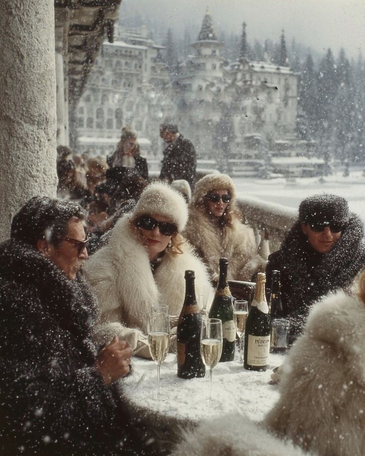 Negli anni settanta St. Moritz era piena di famiglie old money e di quell’umanità internazionale che viaggiava leggera perché poteva permetterselo. Le giornate avevano una coreografia precisa: qualche ora sulle piste, poi il momento in cui la montagna smetteva di essere sport e diventava società. Pomeriggi che odoravano di champagne e di sole riflesso sulla neve, serate in locali raccolti, luce calda di candele e musica bassa, quell’intimità costosa che non ha bisogno di urlare. E fuori, ai tavolini all’aperto, un miscuglio continuo di lingue: conversazioni che rimbalzavano tra francese, italiano, tedesco e inglese mentre si alternavano espresso, cocktail old fashion e il tipo di silenzio pieno che si crea quando tutti sanno di essere nel posto giusto.