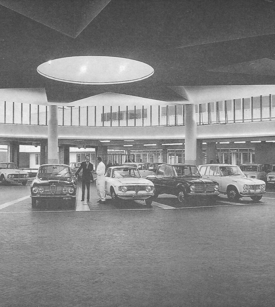 Le grandi vetrate che oggi illuminano aule studio, corridoi e scrivanie erano state progettate proprio con questo intento: mostrare al mondo le carrozzerie della Giulietta e della Giulia, esponendole alla luce naturale per farne risaltare curve e dettagli.