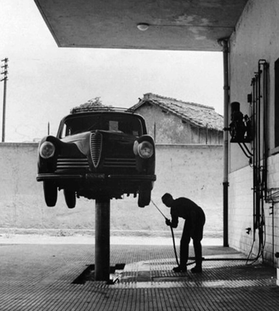 La luce non era solo un elemento funzionale, ma parte integrante della narrazione visiva dell’Alfa Romeo.