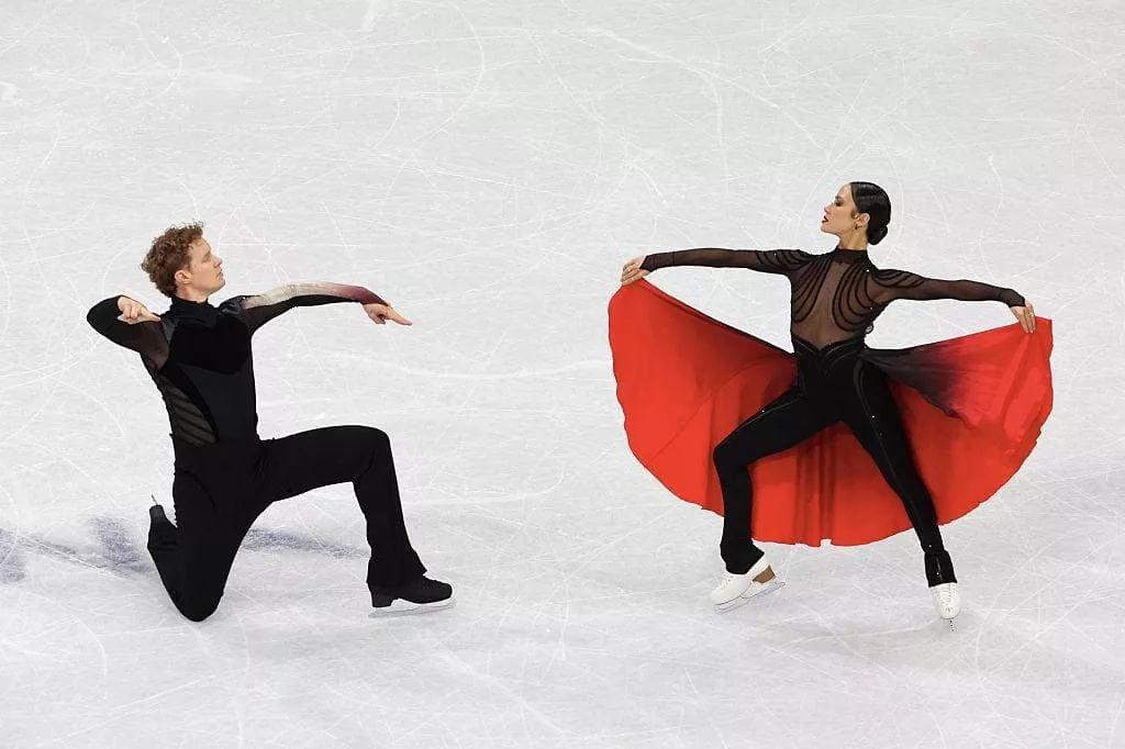Nel loro programma libero, su una versione orchestrale da brividi di “Paint It Black”, non abbiamo visto due pattinatori eseguire dei passi. Abbiamo assistito a una corrida psicologica. Madison ha ribaltato il copione. Non ha vestito i panni della ballerina da far volteggiare, ma quelli della Matadora, fiera e intoccabile, mentre Evan incarnava la bestia, il toro, l’oscurità necessaria a farla brillare. E poi c’era quel costume. Quel nero profondo, squarciato da un inserto rosso che si apriva come una ferita viva o un fiore velenoso.