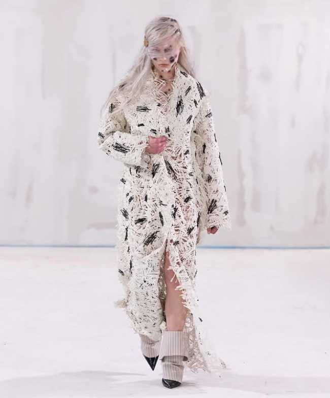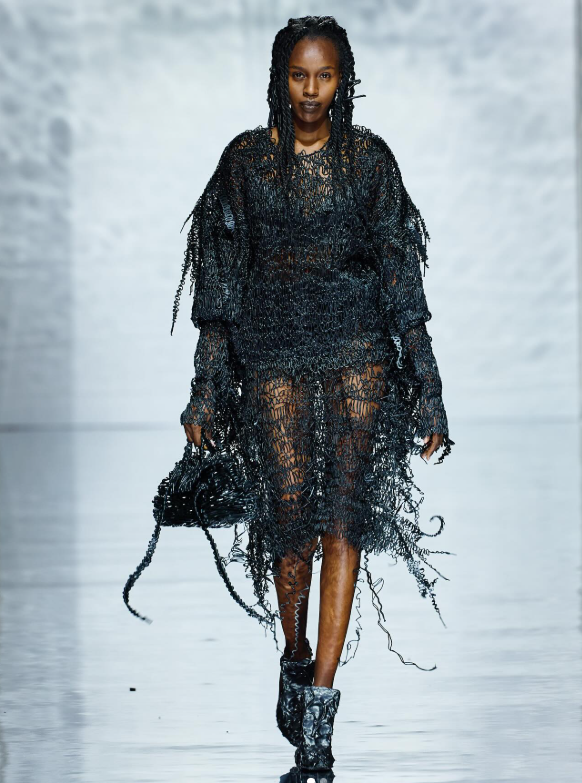 “This approach (putting an emphasis on conceptualizing ideas rather than traditional craftsmanship) resonated with me. The process of making clothes has remained largely unchanged for centuries, despite the many advanced techniques used in other industries that could be applied to fashion,” the designer continued in the Sleek Magazine interview.