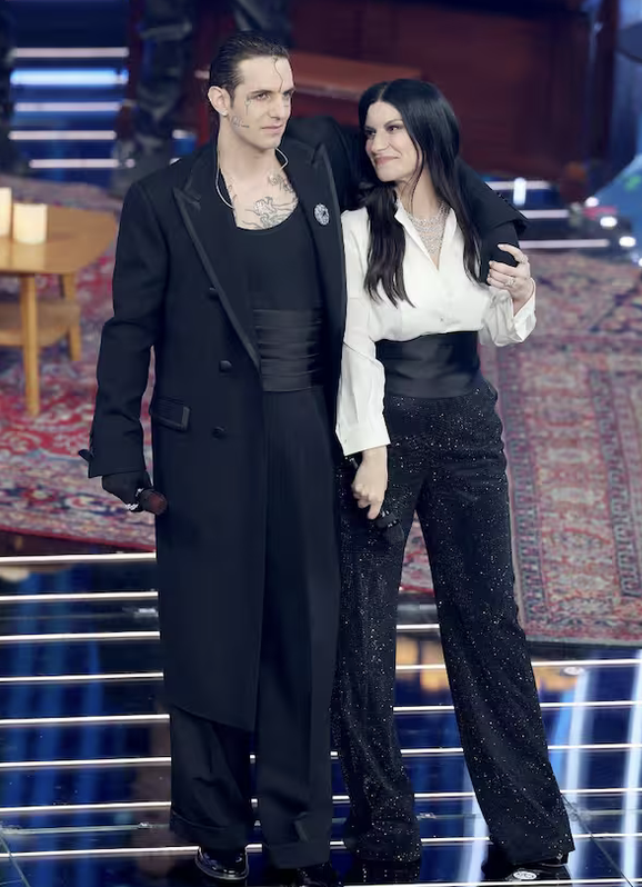 Patty Pravo sceglie un total look rosso firmato Simone Folco. L’immagine è forte, coerente con la sua storia, iconica come sempre. Ma sul palco resta immobile, quasi cristallizzata. La voce non è assente, ma la pronuncia appare a tratti poco nitida, le parole si perdono, l’intensità non arriva con la forza che ci si aspetta da una leggenda. Il carisma resta, ma non basta più a coprire una performance che fatica a decollare. Quando l’immagine supera l’esecuzione, il risultato non è magnetico: è fragile.
