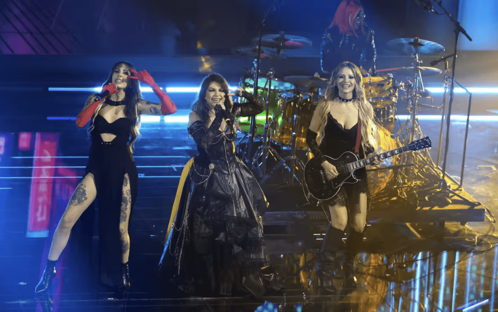 L’energia ricorda un po’ le ABBA: armonie pulite, intesa evidente, movimenti sincronizzati. Funzionano. Sono sciolte, sicure, vocalmente allineate.