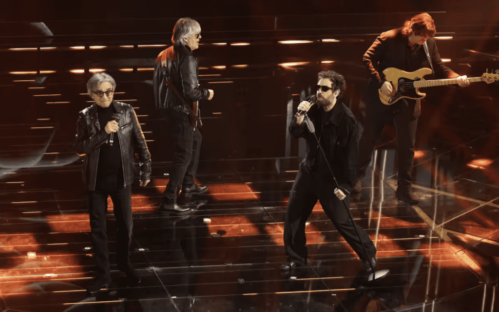 La canzone è enorme, classica, immortale. Brunori è all’altezza. La sua voce dà struttura, sicurezza, profondità. È lui a tenere insieme tutto. Loro restano un po’ lenti, un po’ sospesi. L’energia non decolla mai davvero. Gli outfit, firmati Paolonia, non aiutano: poco incisivi, poco memorabili.