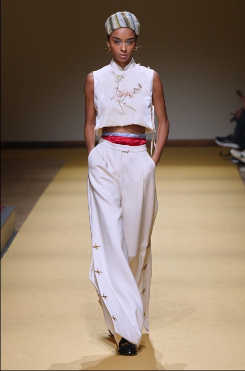 Tra fili rossi sospesi e un’atmosfera calma e raccolta, il défilé di HUI porta in scena una storia fatta di tradizione e contemporaneità. Per la sfilata Fall Winter 26-27 intitolata Her Threads, la fondatrice Huizhou Zhao sceglie di mettere al centro il Nü Gong (女红), l’antica arte femminile del ricamo.