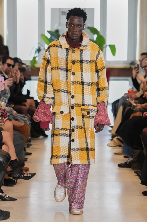 Bomber con rombi e leggings a contrasto aggiungono un tocco sportivo e giocoso, perfetto con la libertà della location. Una sfilata che invita a riscrivere la quotidianità con creatività, spontaneità e immaginazione.