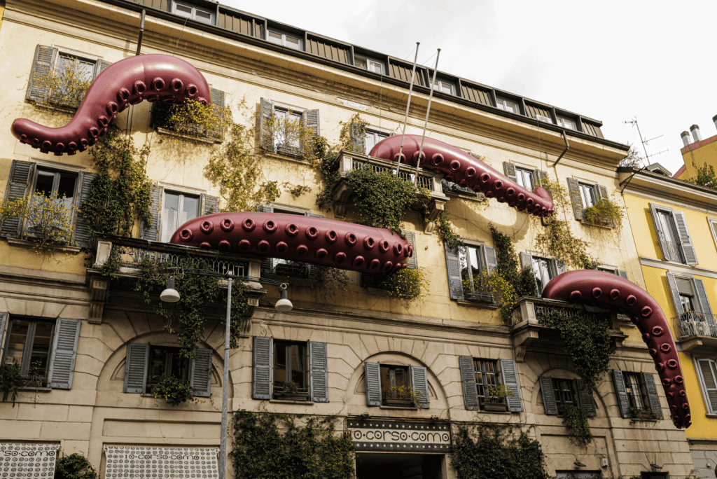 Puffy Summer, tuttavia, non si limita alla collezione. Il progetto si espande nel vivo dello spazio urbano, attraverso installazioni immersive pensate per coinvolgere il pubblico. A Milano, durante la Milano Design Week, un gigantesco polpo gonfiabile dominerà lo spazio di 10 Corso Como, accompagnato da 24 look della collezione.